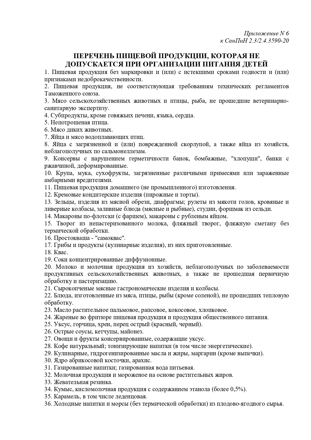 ПЕРЕЧЕНЬ ПИЩЕВОЙ ПРОДУКЦИИ, КОТОРАЯ НЕ ДОПУСКАЕТСЯ ПРИ ОРГАНИЗАЦИИ ПИТАНИЯ ДЕТЕЙ